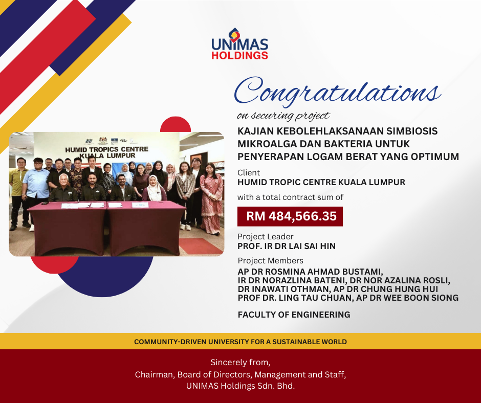 Realising the needs of industries in accelerating their research and development, UNIMAS Holdings Sdn. Bhd. works closely with UNIMAS faculties and centres in providing contract research services to clients.
