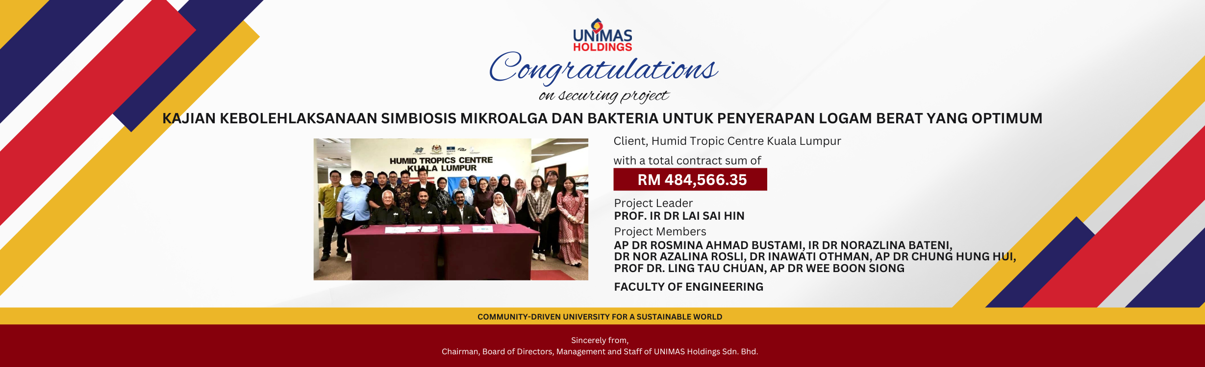 UNIMAS Holdings Sdn. Bhd. plays a pivotal role in matching the various gaps across industries with the pool of expertise, knowledge, and resources available within UNIMAS through impactful consultancy projects.